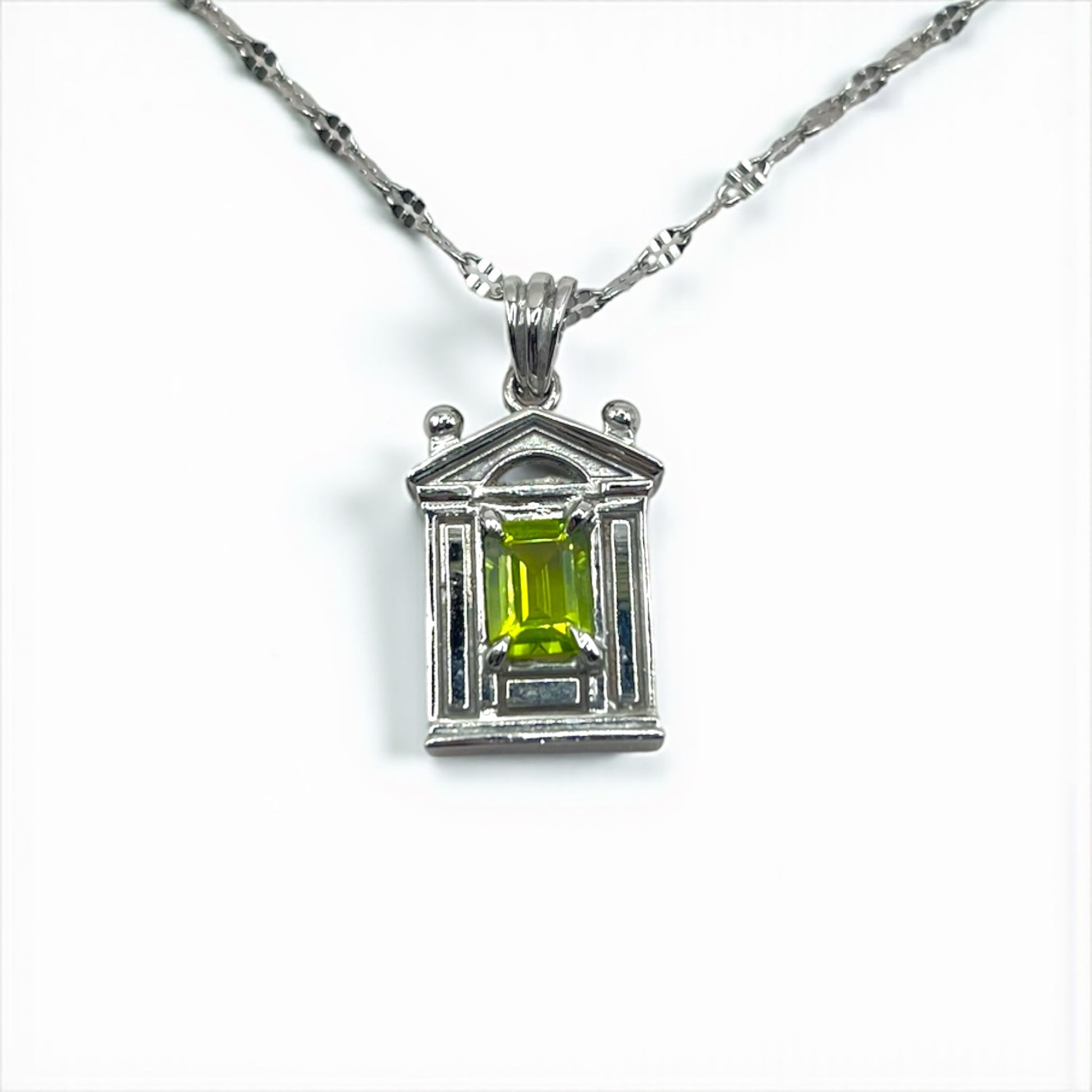 There are moments when light catches just right — when color glows through architecture and turns it into poetry. The Peridot Little Window captures that feeling in form and metal.
