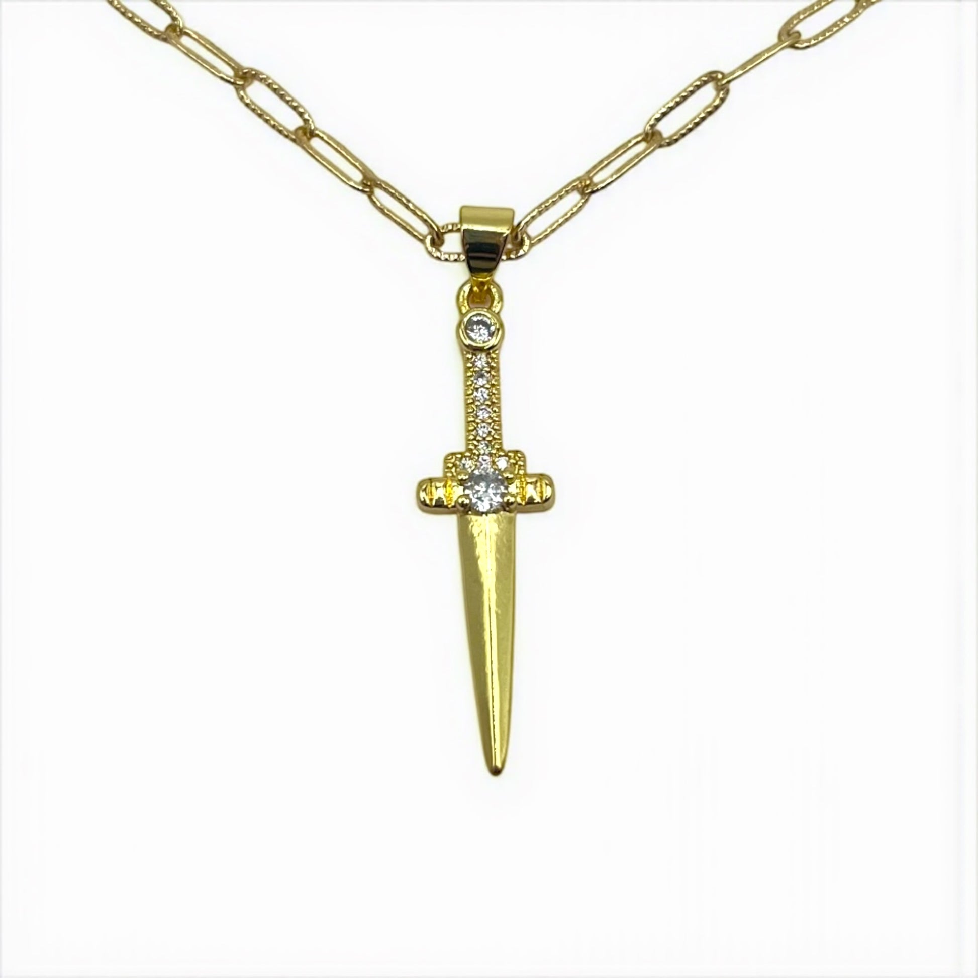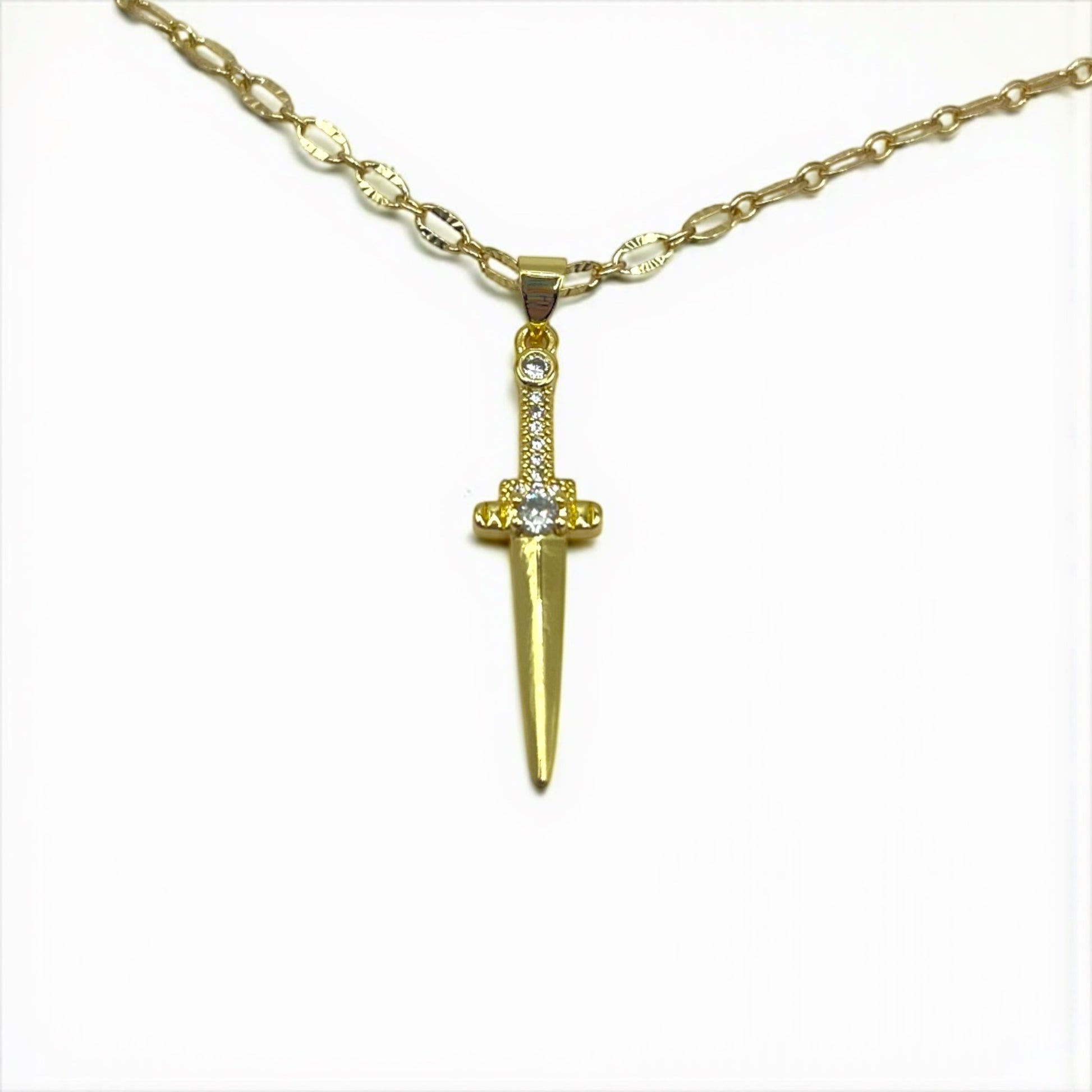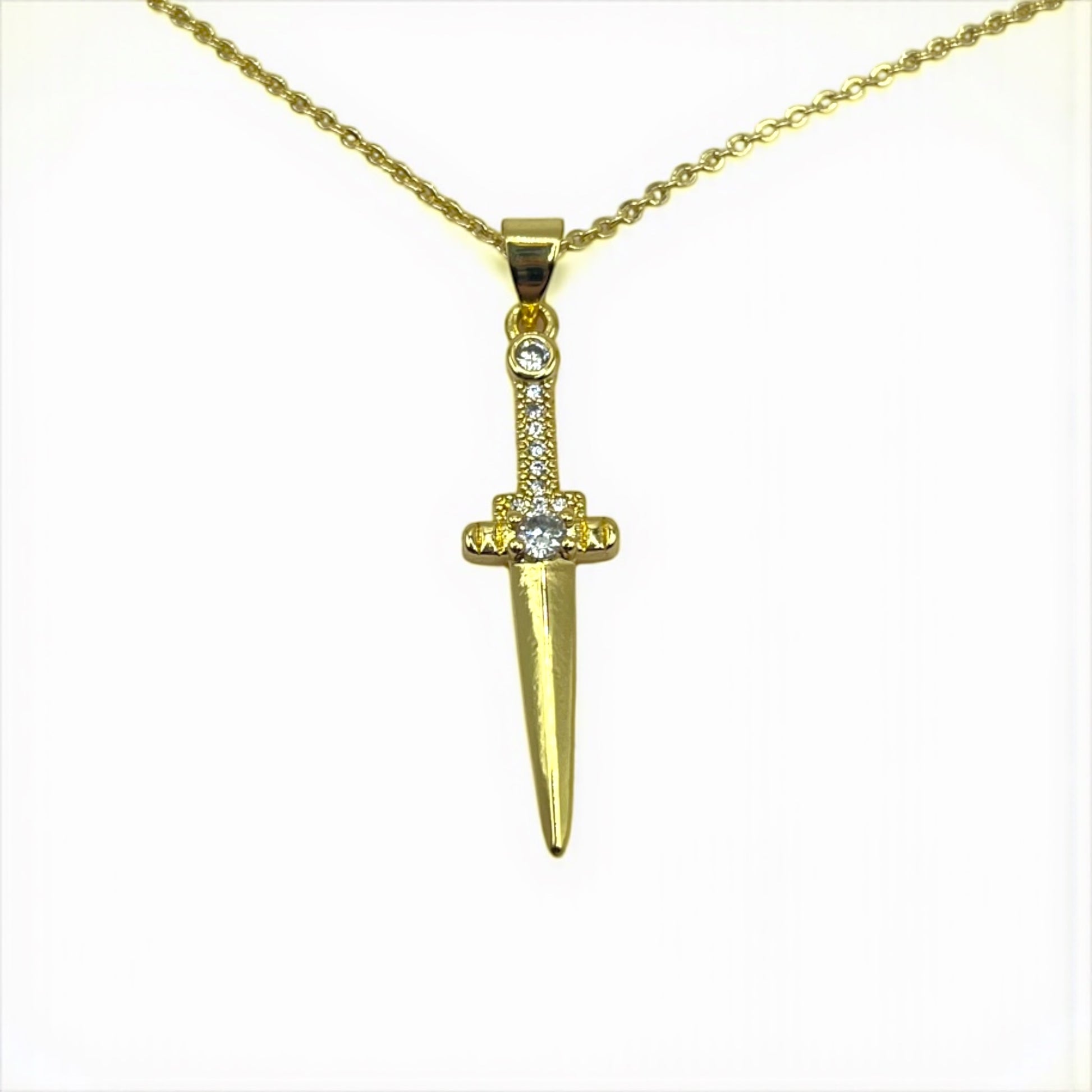 The Dagger of Truth is a talisman of enchantment, a reminder that truth, like a gleaming blade, can reveal the hidden and protect the heart. Though it may have the sharpness to awaken, it also carries the magic to ward off illusions and guide you to your true path. Crafted with 18k gold over brass, at 2.5 microns, and set with our Everlasting Crystal, it holds a spark of protection. Let the Dagger of Truth be your magical companion, revealing what is real while shielding you with its charm.